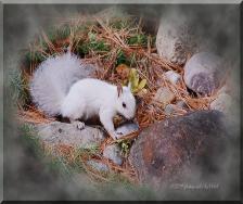 | How many different species of squirrels are there? -There are over 365 species of squirrels in the world. In North America the main squirrels that we see are eastern grey, western grey, American reds, fox squirrels, northern & southern flyers, and ground squirrels. What do squirrels eat? -The gray squirrels diet consists of nuts, seeds and fruit. It will eat bird eggs, bugs, and even an animal carcass if there is no other food source available. Why do squirrels have such long tails? Tree squirrels, in particular, have long tails to help them balance as they run up and down and from tree to tree. Squirrels also use their long fluffy tails as a a parachute when they land from greater heights an "umbrella" -- to shade them from hot sunlight, shield them from rain, warm them during cold weather, and as a flag to communicate with other squirrels. How fast are squirrels? Tree squirrels run and jump so fast that they have been clocked at 20 miles per hour. The average squirrel usually scampers at about half that speed. How long do squirrels live? The average life span for a squirrel in the wild is 3-5 years. Their main predators are hawks, owls, cats, and predators of baby squirrels can include snakes, crows and other squirrels. How often do squirrels mate? Majority of the squirrels mate twice a year. The female squirrel gives birth to 4 or 8 offspring. Should I feed the squirrels in my backyard? We always have a supply of food and water out there for them. We also put more food out in the winter when their food is scarce. You can put sunflower seeds, pumpkin seeds, fruits, veggies, unsalted roasted peanuts and other shelled nuts out for them. Hazelnuts and almonds are a big favorite here. Some people have friendly squirrels that will take peanuts from there hands. Just be careful if you do this. Since their eyes are on the sides of their heads they can't always see where the nut stops and your fingers begin. A squirrel can chomp right through your nail and into your bone! Do squirrels make good pets? Generally no. It is not legal to keep them in most states and they require a lot of maintenance. They also require specific diets to keep them from getting sick. They tend to be possessive over one person and will often attack anyone who comes near that person. Their sharp little claws are about 1/2" long and will easily scratch your eye an anything else they may land on. They don't do well around other pets, children or loud noises. Other squirrel facts:
